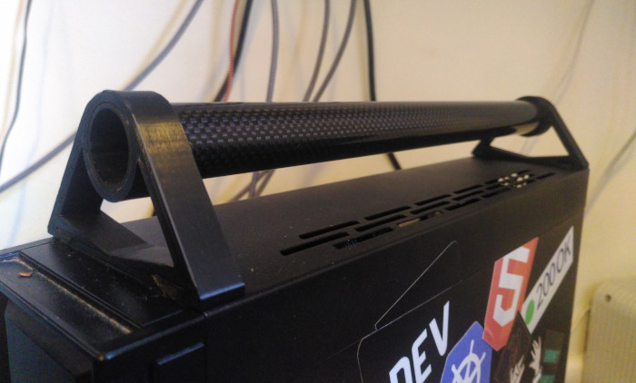 I tried a number of different designs, but I'd decided early that I wanted the actual handle part to be a carbon fibre tube. Is it overkill? Yes. Does it look awesome? Also yes.