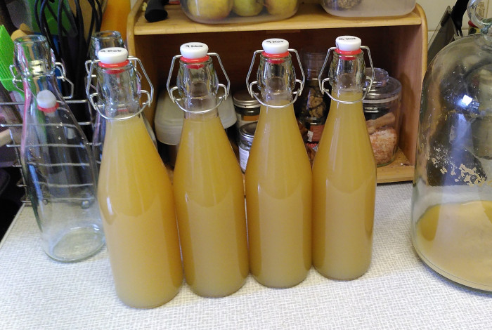 I'll let it settle in the bottles now, it's already started clearing. I expect it to remain cloudy due to pectin, but I'm okay with that.