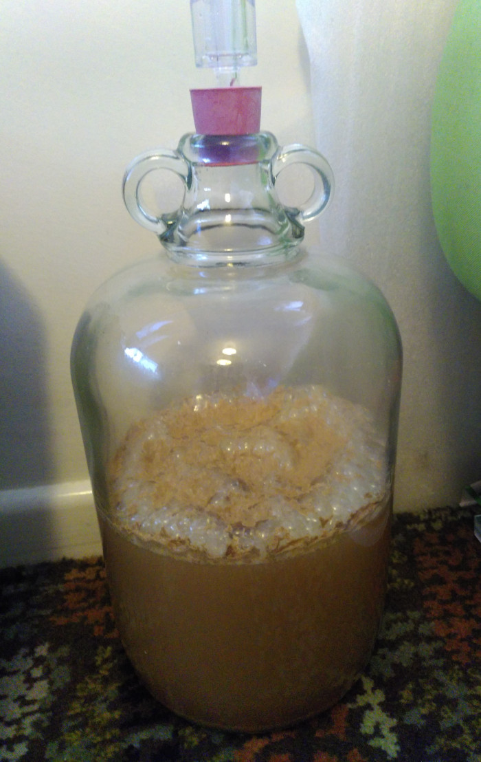 The foam disappeared the next day, and it continued to bubble away for about 10 days. After the bubbling stopped, I measured the specific gravity twice more, a couple of days apart. The number didn't change, which told me the fermentation was done.