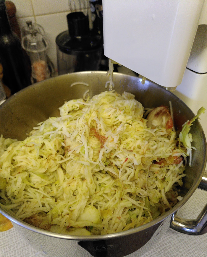 The apples were quickly washed and then shredded. This time I had a Kenwood grater attachment. This was a serious upgrade from my last attempt, it was not only quicker, but the apples were grated more finely.