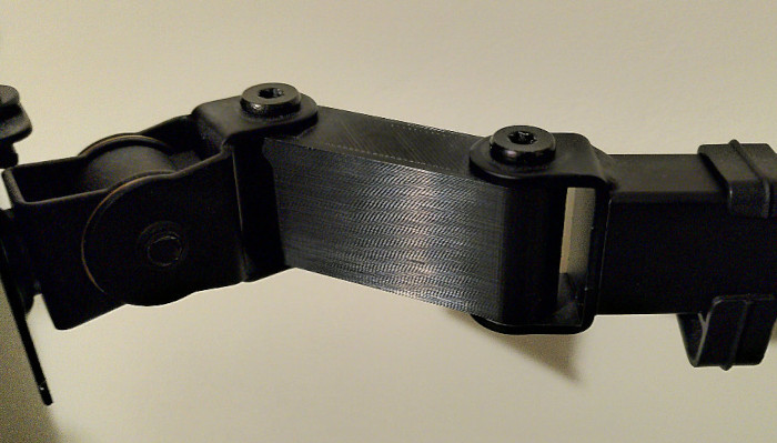 Short extension designed to adapt this monitor stand so that it holds a pair of 21.5" monitors exactly next to one another.