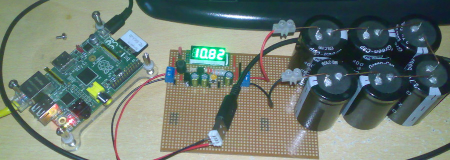 I took readings of the voltage on the cap bank, the voltage out of the converter and the total power consumed by the Pi in mAh every minute.